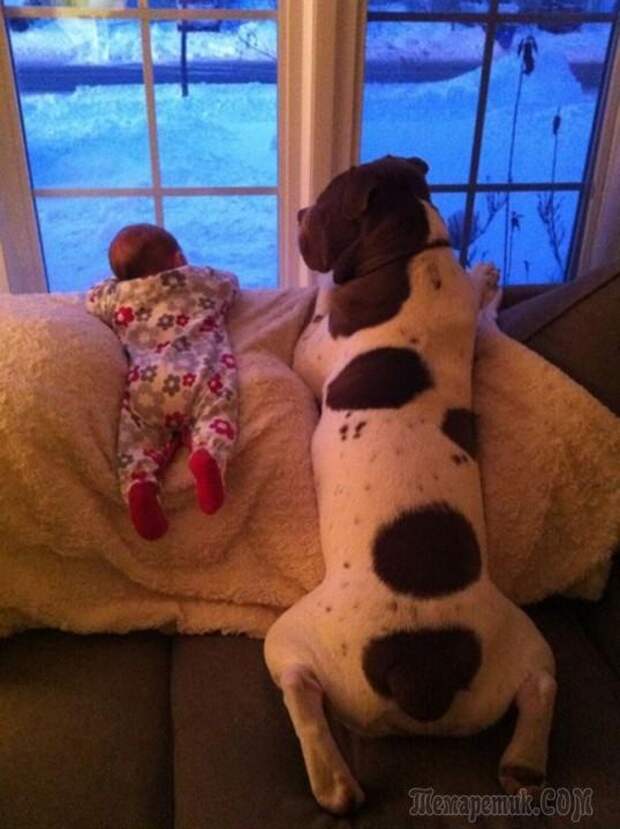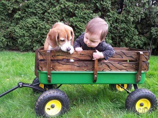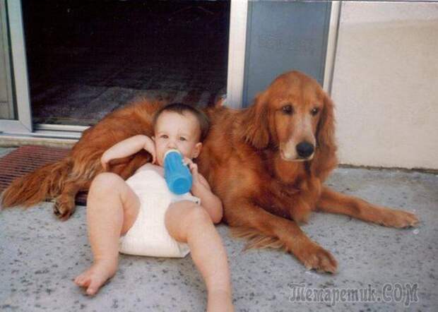 На мой взгляд дружба с собакой - это всегда прекрасно, достаточно посмотреть на эти фотографии и сразу видно, какая любовь и преданность может быть между малышом и собакой. Когда малыш растет в доме, где живет собака, он с самого детства живет в любви человека к животным и животного к человеку, он это видит, чувствует и впитывает. Такой малыш вырастет добрее, нежнее и будет любить животных и все живое вокруг. А собаки, они же так безгранично любят малышей и терпят все их мелкие пакости, потому что понимают, что это ребенок и его нужно беречь.